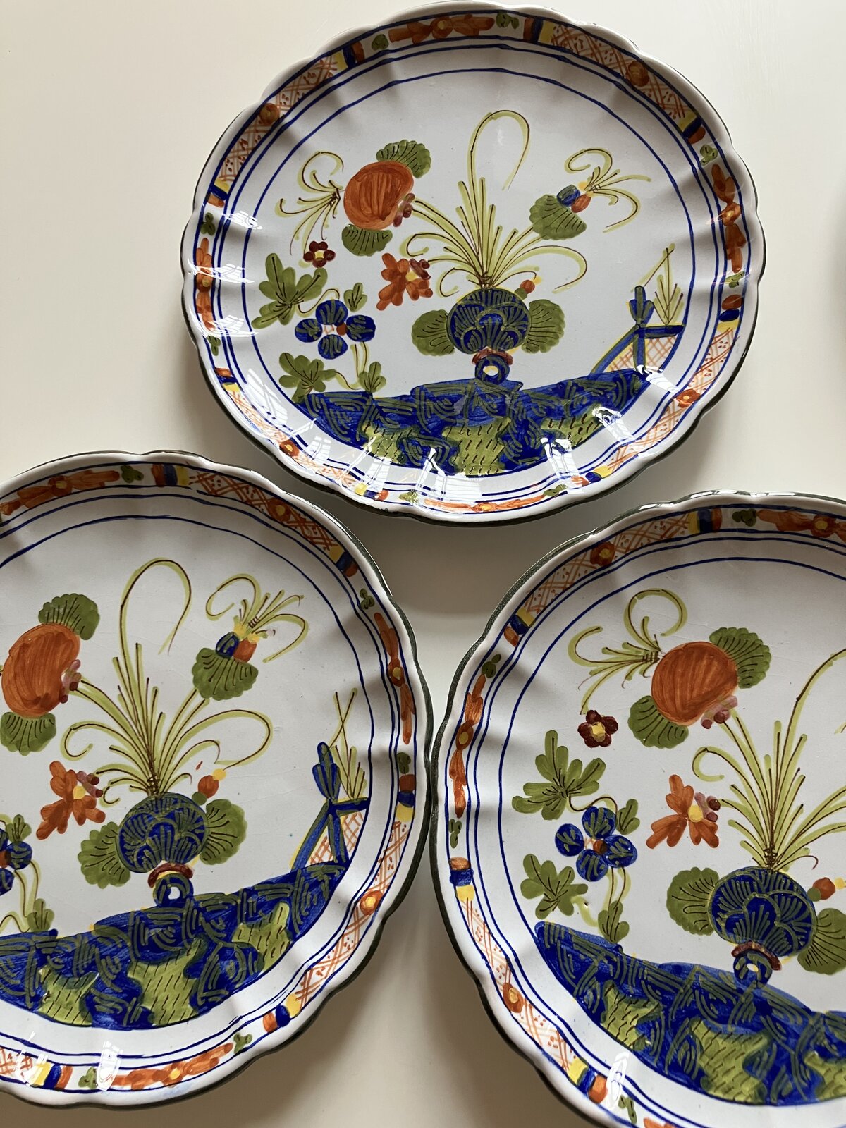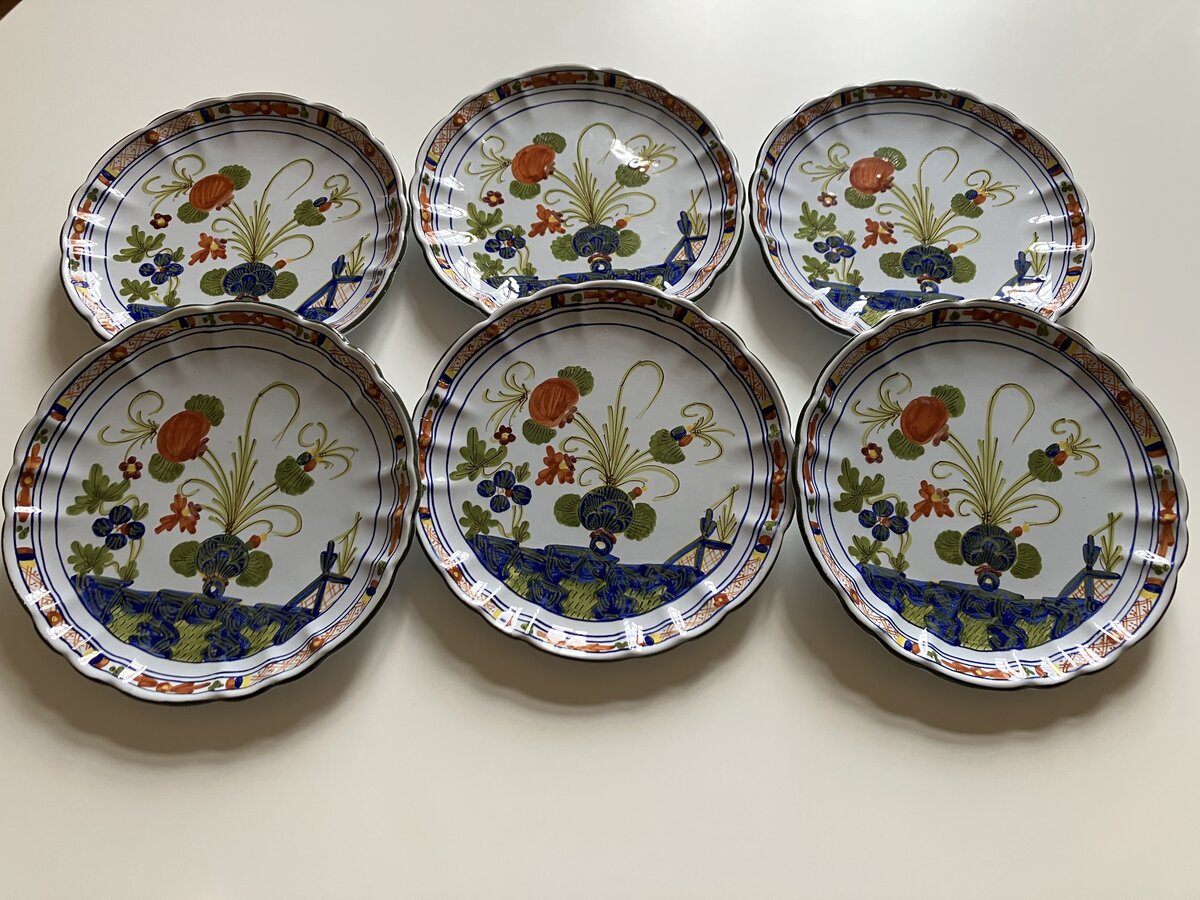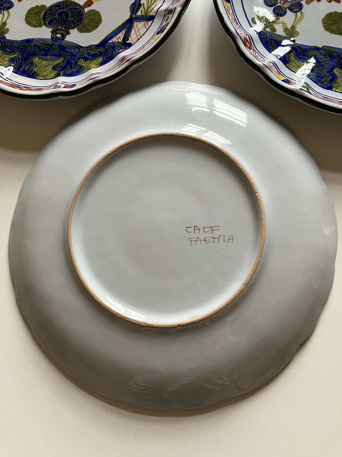 Magnifique ensemble de 6 assiettes plates mouvementées en faïence CACF Faenza Italie, fabriquées et peintes à la main.