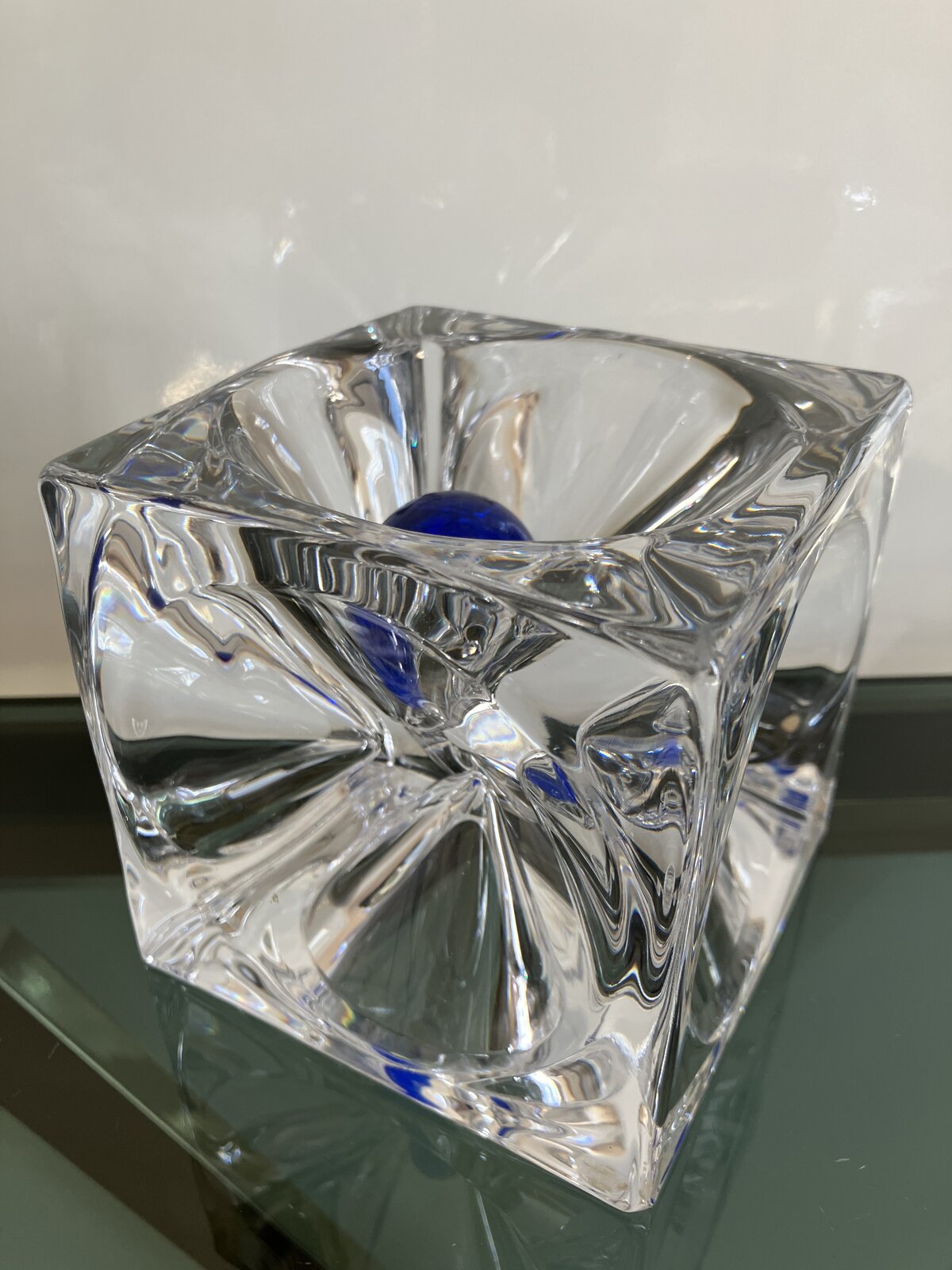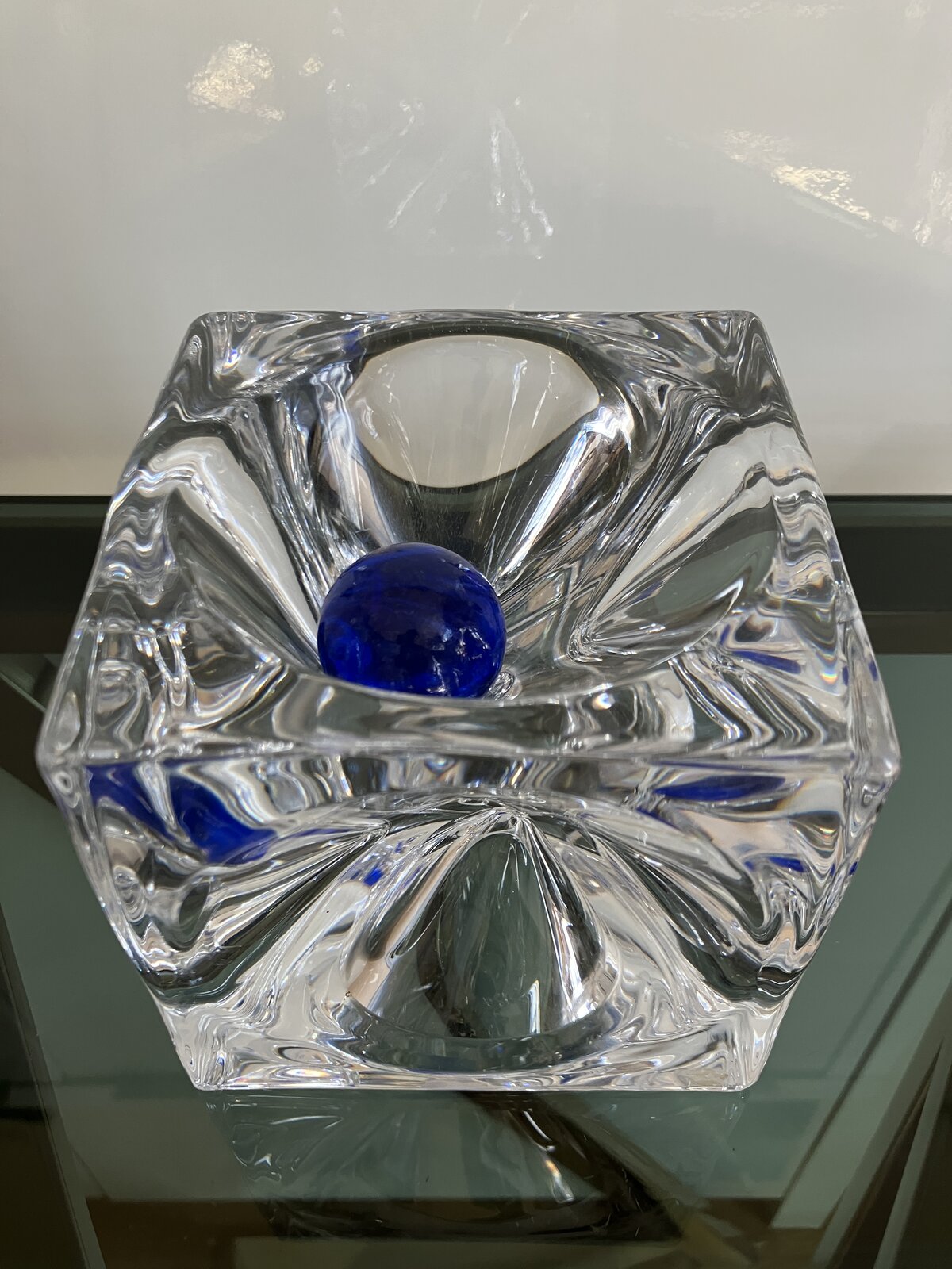 En son centre une bille bleue intense amovible qui semble flotter à l’intérieur du verre.