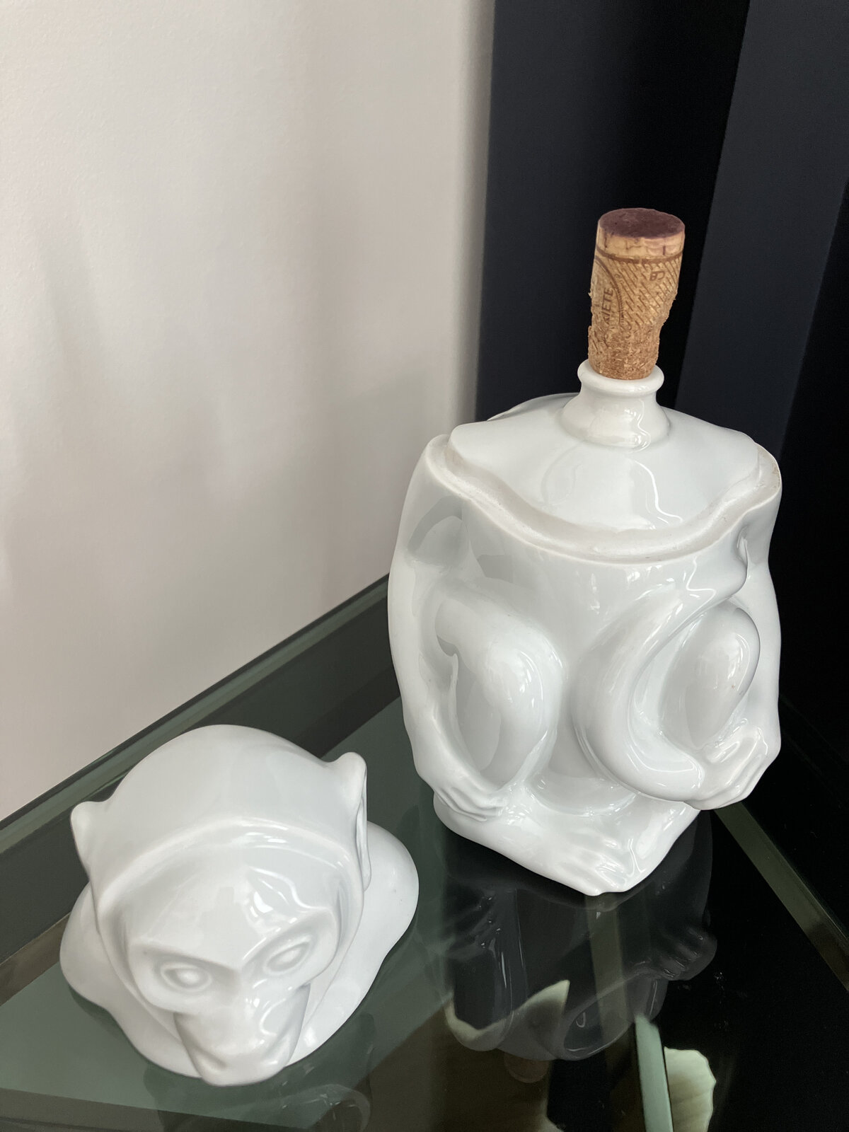 Pichet singe en faïence émaillée blanche H. 20 cm – Circa 1930